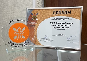 «Энергосбытовая компания Кузбасса» в 2022 году получила диплом лауреата конкурса «Лучшие товары и услуги Кузбасса», позволяющий маркировать услуги компании золотым знаком «Кузбасское качество» |